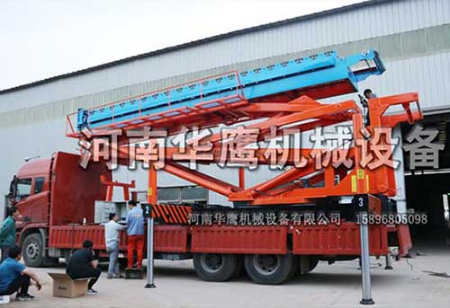 2、操作方便,高空制瓦車分為兩種形式,一種是履帶式另一種是車載式,兩種搭建方式都是一樣的,只是一個能在地面行走另一個需要車載進行移動使用地方,兩種都是能使用遙控進行高空作業(yè)的,都是配置PLC編程控制,一鍵式操作舉升和出瓦的流程,設備在操作時都是一個人能完成全部流程的,不需要幾個人一起操作設備來完成高空制瓦工作的。